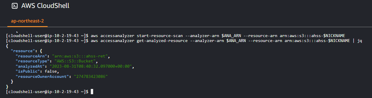 aws accessanalyzer start-resource-scan --analyzer-arn $ANA_ARN --resource-arn arn:aws:s3:::ahss-$NICKNAME